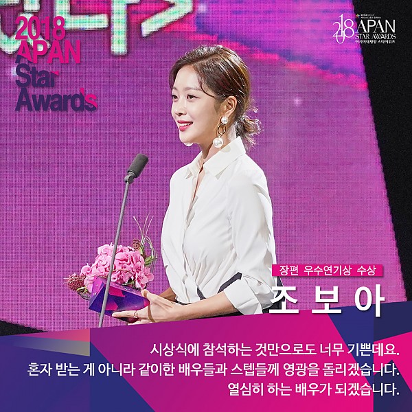'2018 APAN Star Awards' 장편드라마 여자 우수연기상 조보아 페이지 정보 작성자 연매협 작성일18-10-26 14:05 조회11,072회 본문 ▲ 장편드라마 여자 우수연기상 조보아(MBC '이별이 떠났다') 이전글 다음글 목록