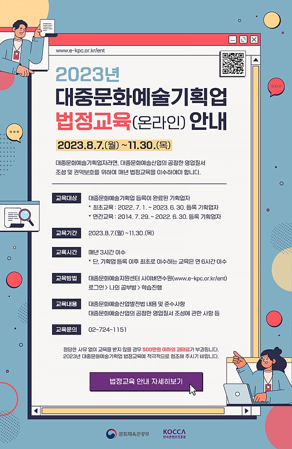 2023 대중문화예술기획업 법정교육(온라인) 안내